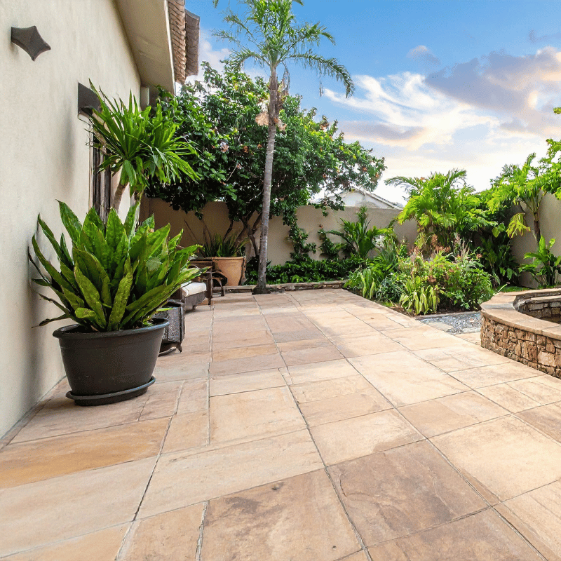 Flagstone (especially bluestone) performs well in freeze–thaw cycles, with natural grip and classic look. Proper base and drainage matter most.